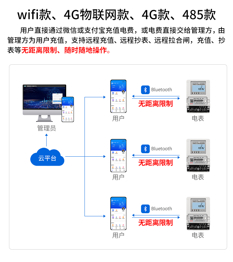 實(shí)現(xiàn)了后臺自動和手動拉合閘操作,短信、APP信息推送等人性化管理提醒通知用戶繳費(fèi),使得預(yù)付費(fèi)管理靈活可靠。