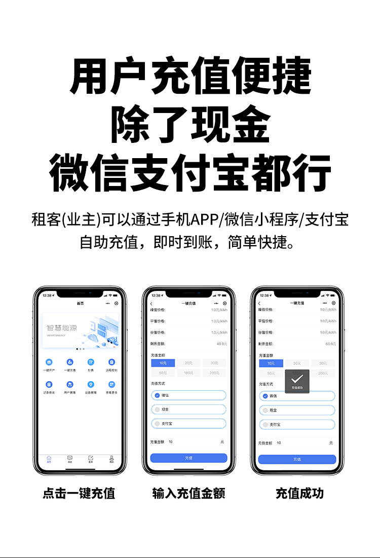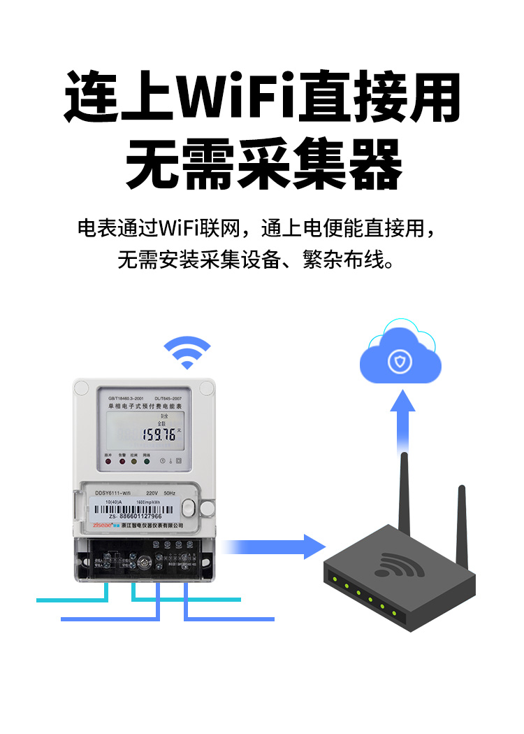 本公司DDSY6111/DDZY6111家用WiFi遠(yuǎn)程智能電表與本公司遠(yuǎn)程抄表系統(tǒng)和手機(jī)APP配套使用,遠(yuǎn)程抄表管理系統(tǒng)具有實(shí)時(shí)抄表、定時(shí)抄表外,還提供了設(shè)備管理功能,如告警、余額短信通知、遠(yuǎn)程充值、手機(jī)抄表、手機(jī)查詢、手機(jī)充值、預(yù)付費(fèi)、后付費(fèi)、自助充值機(jī)充值、遠(yuǎn)程拉合閘、各種查詢報(bào)表、統(tǒng)計(jì)報(bào)表下載等功能。