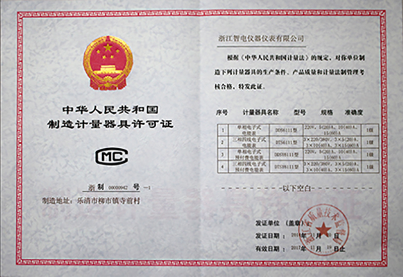 制造計(jì)量器具許可證