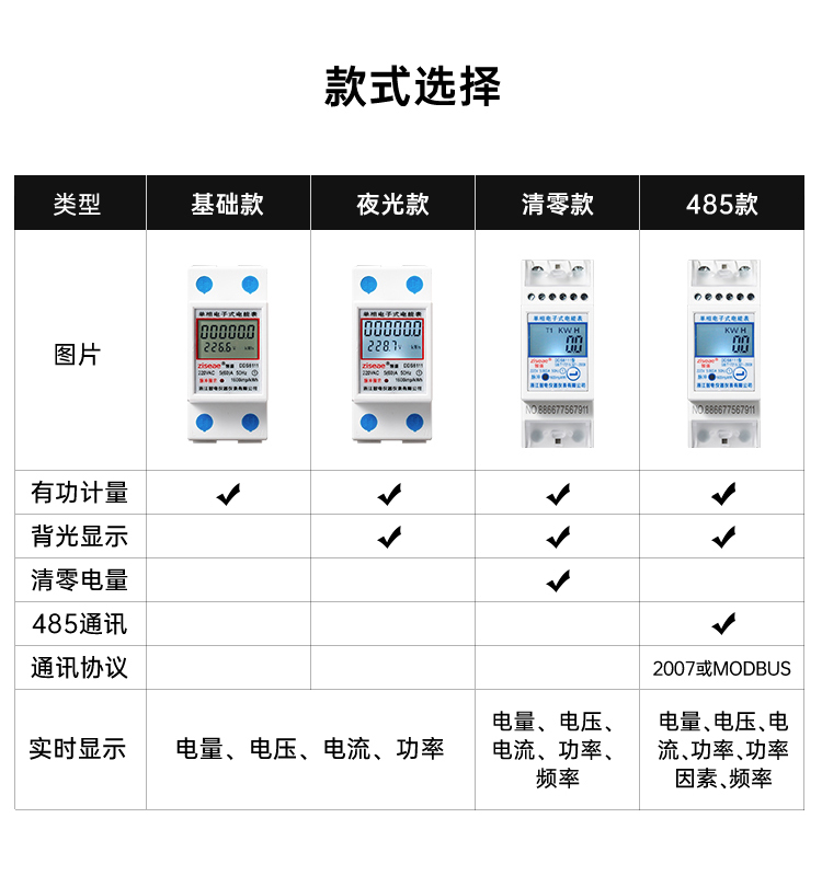 2P單相導軌式電表(帶背光)