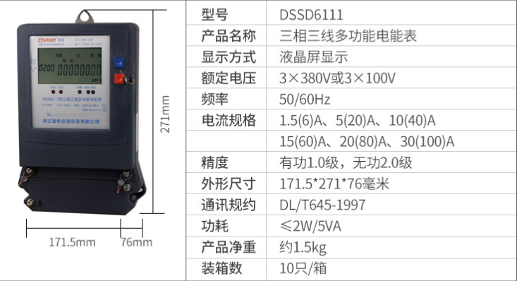 DTSD/DSSD6111型電子式三相智能電能表是采用集成電路,應(yīng)用數(shù)字采樣處理技術(shù)及SMT工藝,根據(jù)工業(yè)用戶實(shí)際用電狀況所設(shè)計(jì)、制造的儀表。